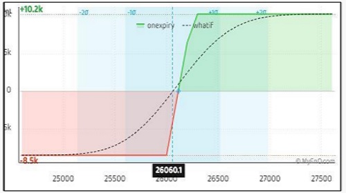 * Rationale: - Traders may consider deploying this spread strategy to achieve moderate returns while maintaining controlled risk and reward. The strategy involves buying one lot of the 26,000 strike Call Option and simultaneously selling one lot of the 26,250 strike Call Option