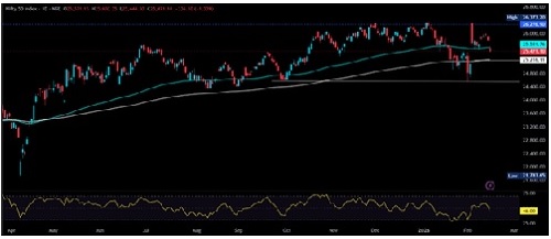 From a levels perspective, 25,800 stands as the immediate resistance, followed by 26,000 and 26,200. On the downside, key supports are located at 25,300 and 25,100. A decisive break below 25,000 could increase downside momentum and accelerate corrective pressure.Given the prevailing volatility, traders are advised to adopt a cautious, risk-managed approach, with strict stop-loss discipline to navigate potential sharp swings.