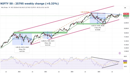 * For Traders: Fresh long positions may be considered on dip near 25500 - 25,400, with upside targets of 26,000 (2.36%) and 26300 (3.54%). A stop-loss at 25150 (-0.98) on closing basis is advised to manage risk effectively.