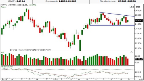 * A sustained move above 25,000 may fuel momentum towards 25,200– 25,500, while a break below 24,650 could drag the index to 24,500–24,300.