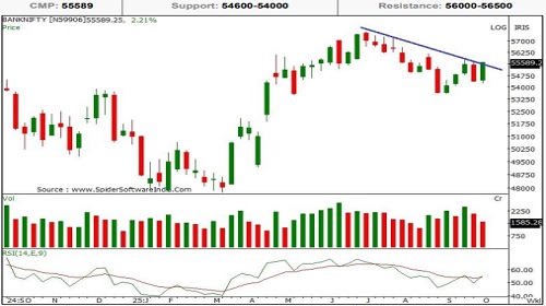 * For the week, Bank Nifty is expected to trade in the 56,500–54,000 range with a positive bias.