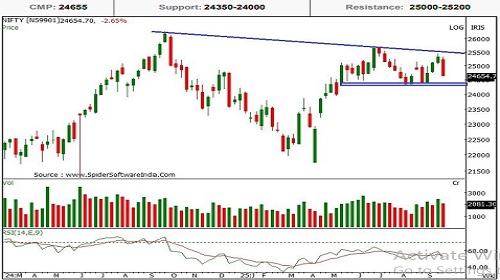 * Going forward, a decisive move above 24,850 could trigger buying interest, paving the way for an upside towards 25,000–25,200. Conversely, a break below 24,500 may accelerate selling pressure, dragging the index towards 24,350–24,000.