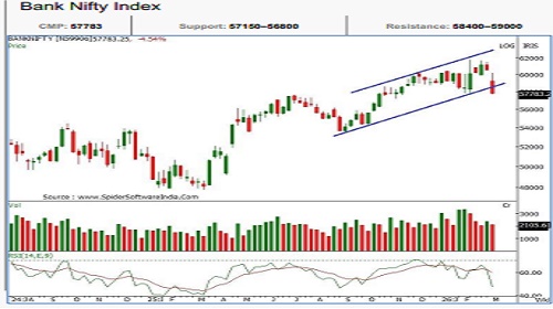 * Bank Nifty began the week on a weak note and remained highly volatile with a clear downward bias. The index closed at 57,783, registering a sharp weekly loss of 2,746 points, significantly underperforming the broader market.