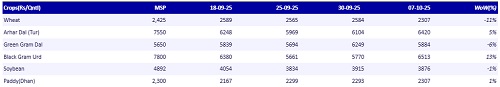 * Crop Acreages as on 6th Oct’25: down by 44% YoY.