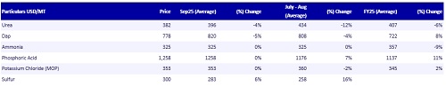 Exhibit 5: Fertilizer/Raw material prices: