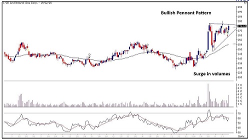 * Bullish “Pennant” pattern on the daily chart.